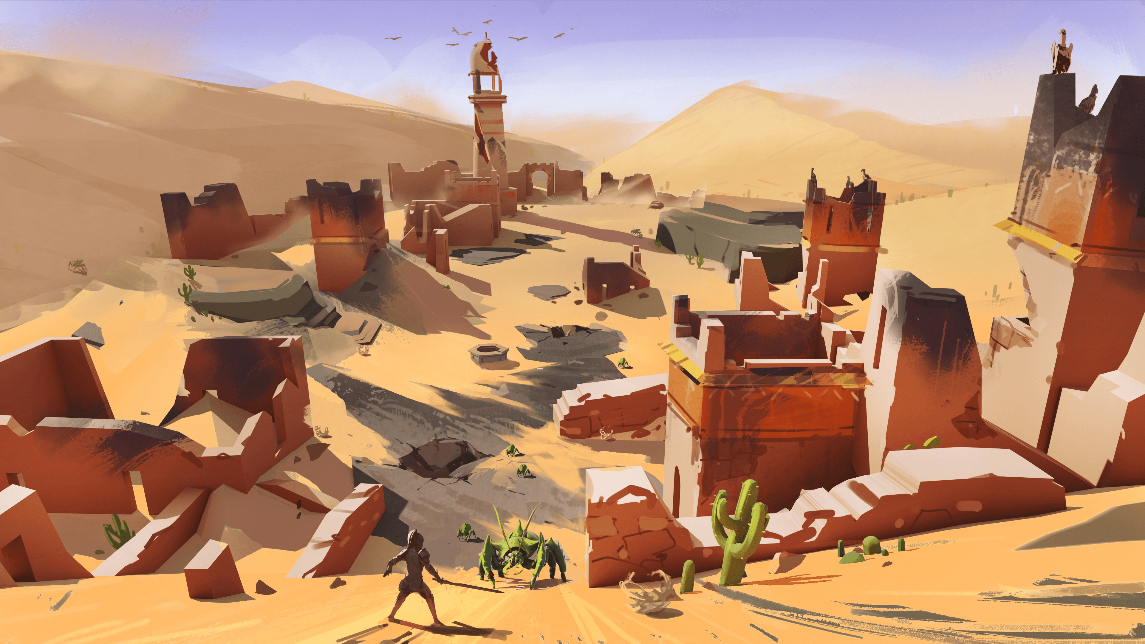 From the very beginning, Gielinor has had its fair share of desert regions and we want to honour the heritage of these wonderful regions of RuneScape. We're drawing heavily from the rich history of Kharid-Et, Menaphos, and Sophanem to create a ruined landscape that feels innately RuneScapey, while offering you something different.