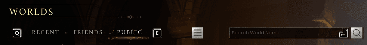 It's time to play! To find your dedicated server, go to the Public tab of the Worlds screen: